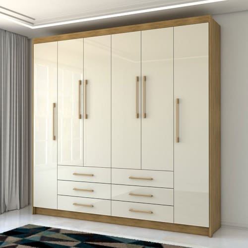 O(a) Guarda-Roupa Casal Ele e Ela 6 Portas 6 Gavetas Nature/Champanhe - Loja é produzido em MDP na escala de brilho Impressão UV, e possui um grau de dificuldade de montagem: Médio.