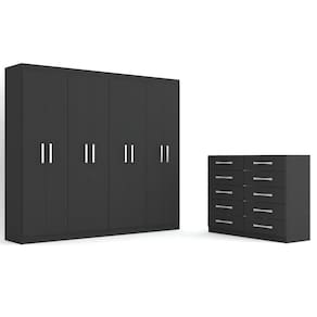 O(a) Guarda-Roupa Casal Ele e Ela 8 Portas 8 Prateleiras e Cômoda 10 Gavetas Preto - Loja é produzido em MDF e MDP na escala de brilho Fosco, e possui um grau de dificuldade de montagem: Médio.