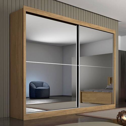 Guarda Roupa Casal Espelhado 2 Portas 4 Gavetas - Verona-Amêndoa - Made MarcsO Guarda Roupa Verona é o ideal para quem precisa de organização com pouco espaço. Este guarda roupa possui 2 portas de correr com deslizamento em trilho inferior de alumínio, para maior facilidade na abertura. São 04 gavetas com corrediças telescópicas, com abertura total das gavetas e deslizamento silencioso, o suporte de gaveta é de MDF, que proporciona mais resistência. Prateleiras espaçosas para roupas de cama e sapatos. Seu interior conta ainda com um nicho prático e funcional. Cabideiros e calceiro em alumínio, qualidade e durabilidade. As portas são fracionadas com perfil de alumínio, para evitar empeno e traz mais robustez e resistência para seu guarda roupa. Fabricado em MDF 100%, com chapas de 15mm que proporciona mais firmeza ao guarda roupa. E tudo isso com material ecologicamente correto. Perfeito não é? Aproveite!Faz parte deste ambiente:Guarda Roupa Casal Espelhado 2 Portas 4 Gavetas - Verona-Amêndoa - Made MarcsObs: Objetos de decoração não inclusos.Particularidades do guarda-roupa:Características:- 100% MDF- Divisão Ele e Ela- Perfil de alumínio nas portas- Portas deslizantes com trilho de alumínio- Roldanas com sistema de amortecimento e regulagem- Gavetas com corrediças telescópicas- Cabideiros e calceiros espaçosos- Compartimento para calçados - Excelentes repartições e amplo espaço interno - Portas com perfil de alumínioDimensões:Altura: 2,18 metrosLargura: 2,02 metrosProfundidade: 51 centímetrosInformações Importantes:-O envio desse produto é feito através de transportadora.-Produtos podem apresentar diferenças de tonalidades entre a foto na tela e o produto real, devido a calibração de cor de tela. -Limpar com flanela ou pano macio. Não utilizar álcool. Não utilizar produtos abrasivos ou corrosivos.-Nós prezamos pela qualidade da entrega em primeiro lugar, trabalhamos com transportadoras altamente selecionadas e os melhores materiais de embalagem.-A montagem é de total responsabilidade do comprador. Antes de comprar, verifique o espaço disponível para a montagem.-Certifique-se de que o produto caiba em elevadores e vãos de escadas, não fazemos içamentos. Quaisquer despesas deste tipo ficam a cargo do cliente-Garantia de 3 meses contra defeitos de fabricação.