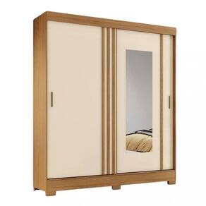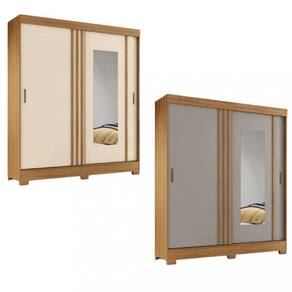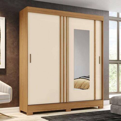 Características: Estrutura em MDP 12mm 2 Portas deslizante com apliques ripados 2 Gavetas Corrediças metálicas Cabideiro de madeira Puxadores em alumínio
