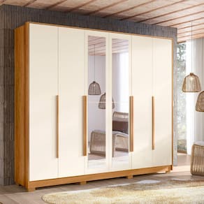 Características: Estrutura em MDP 6 Portas Espelho 6 gavetas com corrediças telescópicas Puxadores de MDF revestidos Cabideiros de alumínio Moldura de 15mm e pés inclusos