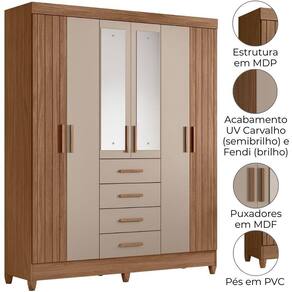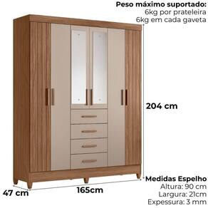 Projetado para atender às necessidades do dia a dia, o Guarda-Roupa Casal Aruba oferece espaço e modernidade. Estrutura em MDP (15/ 12 mm) e acabamento em pintura UV. Composto por portas com dobradiças metálicas (portas laterais em MDF com detalhe frisado e centrais com espelho), cabideiro interno (alumínio), gavetas com corrediças metálicas e prateleiras. Produto com dupla opção de montagem: pés em PVC ou sapatas plásticas (2 mm) conforme preferência do cliente. Este produto será entregue em 03 volumes.