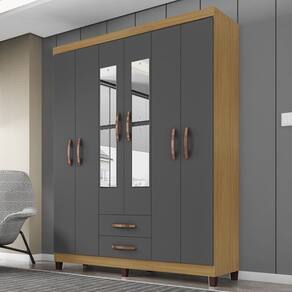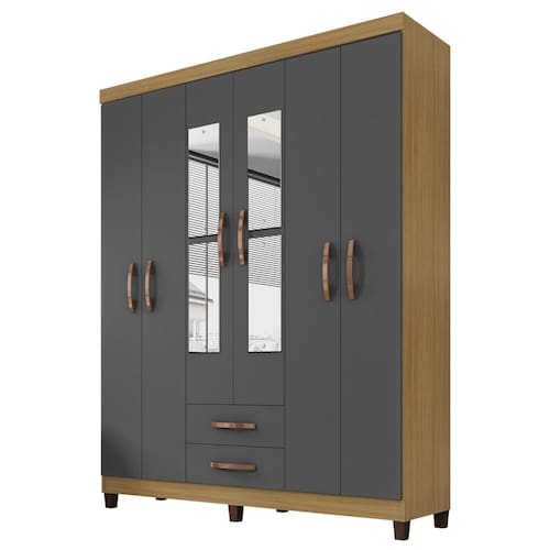 O Guarda Roupa Casal 6 Portas e 2 Gavetas com Espelho, um móvel elegante e funcional para complementar seu ambiente com estilo e organização. Estrutura em MDP de 12mm (Portas e Frente de Gaveta em MDP de 15mm e fundo de 3mm), suas 6 portas equipadas com dobradiças metálicas, sua interna com 2 cabideiros de madeira. Puxadores em ABS, enquanto os pés de plástico proporcionam estabilidade e resistência. Além disso, a pintura UV texturizada oferece um acabamento impecável, realçando a durabilidade e beleza do móvel. Ideal para quem busca praticidade sem abrir mão do design, acompanha Espelho. Este móvel chegará na sua casa separado em 03 volumes.