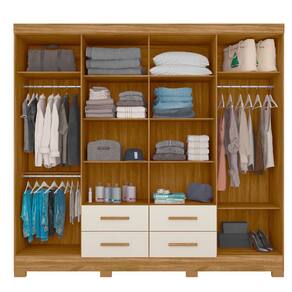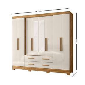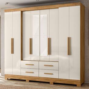 O Guarda-Roupa San Lorenzo Plus possui acabamento em impressão UV Relevo Fosco e tem espelho opcional. São, ao todo, 8 portas de bater e 4 gavetas externas com corrediças telescópicas. Além disso o produto conta com puxadores cromados, bastões em alumínio e portas centrais recuadas.