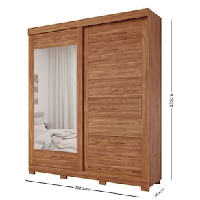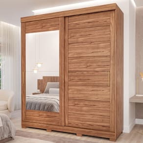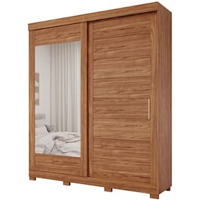 Guarda Roupa Casal Espelho e Pés 2 Portas de Correr 4 Gavetas Flora Panan - Palha