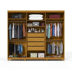 O Roupeiro Absolut New é o produto ideal para quem deseja unir beleza e funcionalidade. Com design exclusivo ele traz em sua composição linhas geométricas ousadas, conferindo modernidade à peça. O charme do produto fica a cargo dos puxadores, com linhas paralelas e diagonais. A porção interna conta com amplo espaço, quatro grandes gavetas e prateleiras organizadoras.