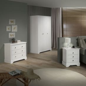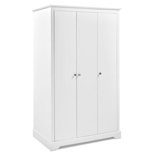 O Guarda-Roupa de 3 portas Louise combina praticidade e estilo para o dia a dia. Seu acabamento branco traz leveza ao ambiente, enquanto os puxadores metálicos dão