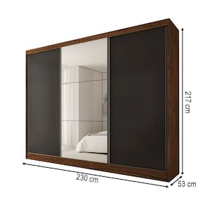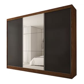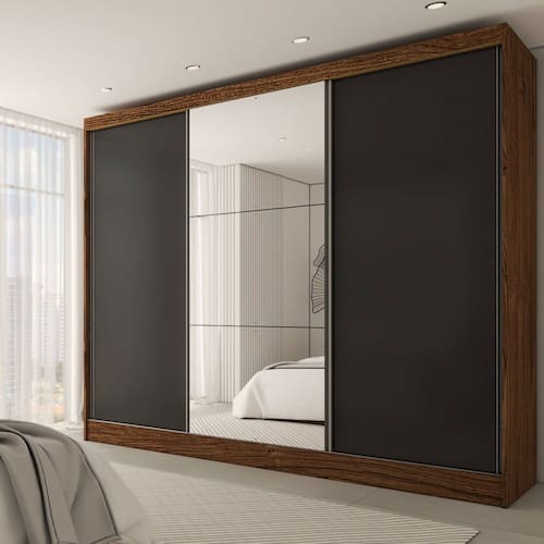 Guarda-Roupa Casal Europa 3 Portas 4 Gavetas 100% Mdf com Espelho Castanho/Preto - Panorama Móveis