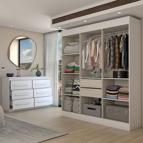 - Acompanha: Guarda-Roupa + Cômoda + Kit Ferragens + Manual de Montagem