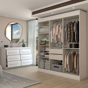 - Acompanha: Guarda-Roupa + Cômoda + Kit Ferragens + Manual de Montagem