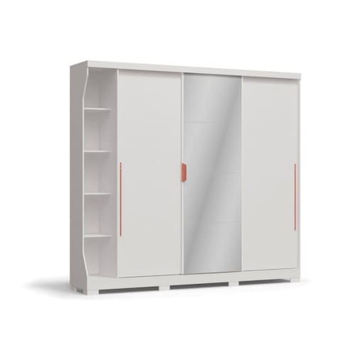 Guarda Roupa Casal F542 03 Portas de Correr , 3 portas deslizantes com puxadores metálicos com brilhantes e gavetas internas com corrediças telescópicas que permitem um deslize suave, excelente aproveitamento de espaço, possui prateleiras, maleiro e cabideiros para uma melhor organização, ainda conta com espelho na porta central e nichos na lateral oferecendo design inovador para agregar beleza ao ambiente. Confira e leve já!