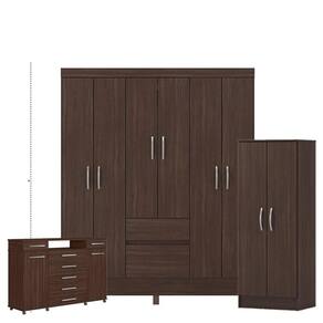 Guarda Roupa Casal Flash 2 com Multiuso Viena com Cômoda London Café - Demóbile