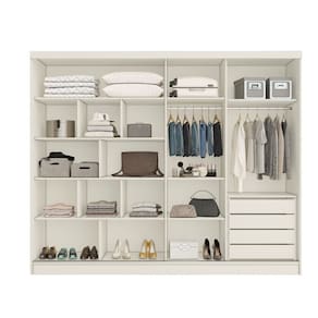 Características: Estrutura em MDF 2 Portas 4 Gavetas Corrediças telescópicas Nichos Prateleiras Cabideiro Alumínio Prateleira suporta até 4kg a 6kg Gaveta suporta até 4kg Montagem Flex
