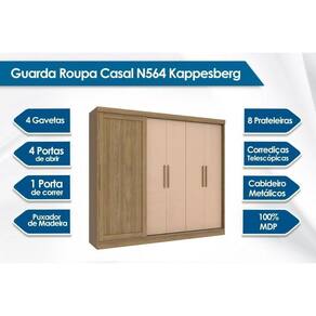 Guarda Roupa Casal Flex 5 Portas e 4 Gavetas N564 Nogueira/Macadamia - Kappesberg
