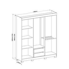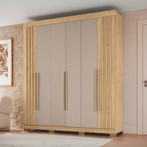Caracteristicas: 2 Gavetas com corredicas telescopicas 6 Portas 3 Prateleira internas Cabideiros de madeira Calceiro Diferencial, Flex portas reversiveis Estrutura de MDP 12 e 15mm, fundos MDF 3mm Possui pes Puxador em MDF