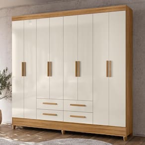 Guarda Roupa Casal Flórida 8 Portas E 4 Gavetas Freijó/off White - Moval Freijó/off White