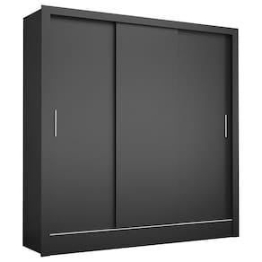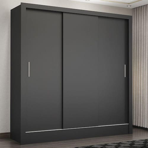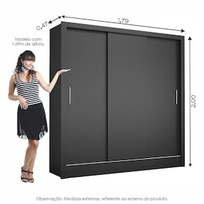 Guarda Roupa Casal Fortaleza 3 Portas Carioca Móveis Preto Guarda Roupa Casal Fortaleza 3 Portas Carioca Moveis Guarda-Roupa Fortaleza, combinacao perfeita entre conforto e conveniencia para o quarto. O Guarda-Roupa Fortaleza com 3 portas de correr, 2,00m de altura, 1,79m de largura e 0,47m de profundidade combinado com 6 prateleiras e um amplo cabideiro, possui solucoes inovadoras para atender as mais exigentes necessidades. Cabideiro medindo 1,11m com suporte no centro. Nao enverga com peso dos moletons, ternos, sobretudos, camisas e acessorios. Prateleiras ideais para colocar roupas de banho, perfumes, kits de maquiagem, caixinhas com acessorios e bolsas menores, e ainda com divisao ele/ela, proporcionando ao casal acomodar todas as roupas e acessorios de forma mais organizada e com maior visibilidade. Sapateiras com espaco ideal para guardar desde mala de viagem ate colecoes de tenis, sapatos, ou outros acessorios.