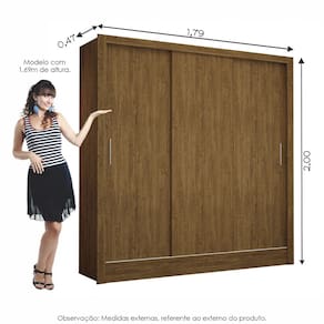 Guarda-Roupa Fortaleza, combinação perfeita entre conforto e conveniência para o quarto. O Guarda-Roupa Fortaleza com 3 portas de correr, 2,00m de altura, 1,79m de largura e 0,47m de profundidade combinado com 6 prateleiras e um amplo cabideiro, possui soluções inovadoras Para atender as mais exigentes necessidades. Cabideiros com 1,11m com suporte no centro. Não enverga com peso dos moletons, ternos, sobretudos, camisas e acessórios. Prateleiras ideais para colocar roupas de banho, perfumes, kits de maquiagem, caixinhas com acessórios e bolsas menores, e ainda com divisão ele/ela, proporcionando ao casal acomodar todas as roupas e acessórios de forma mais organizada e com maior visibilidade. Sapateiras com espaço ideal para guardar desde mala de viagem até coleções de tênis, sapatos, ou outros acessórios.