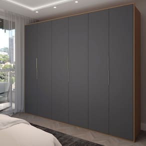 O(a) Guarda-Roupa Casal Galeão 6 Portas 6 Gavetas Amêndola Touch/Grafito - Loja é produzido em MDP na escala de brilho Fosca com Textura, e possui um grau de dificuldade de montagem: Médio.
