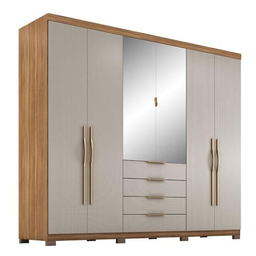 Guarda Roupa Casal Giardino 6 Portas Amêndola Nude Prime TX com Espelho e Pés - Demóbile
