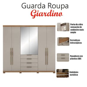 Transforme seu quarto com esse belo guarda roupa da linha Giardino desenvolvido pela Demóbile com materiais de altíssima qualidade e procedência em MDP. Ideal para você que busca mais praticidade para o seu dia dia, possui amplo espaço interno, várias repartições nichos, prateleiras para acomodar roupas, acessórios, sapatos. Possui um design moderno conta-se com 6 portas sendo 2 delas com espelho trazendo aquele toque sofisticado. As gavetas equipadas com corrediças telescópicas deixando mais suave ao abrir e fechar. Aproveite e garanta já o seu!