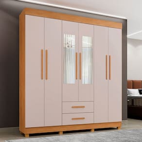 O(a) Guarda-Roupa Casal Golfo 6 Portas 2 Gavetas com Espelho Cinamomo/Off White - Pnr Móveis é produzido em MDP na escala de brilho Fosco, e possui um grau de dificuldade de montagem: Médio.