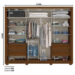 Com design moderno e inteligente, esse belo guarda-roupa ainda conta, puxadores resistentes, gavetas espaçosas e que deslizam suavemente, além de prateleiras para melhor aproveitamento do móvel.