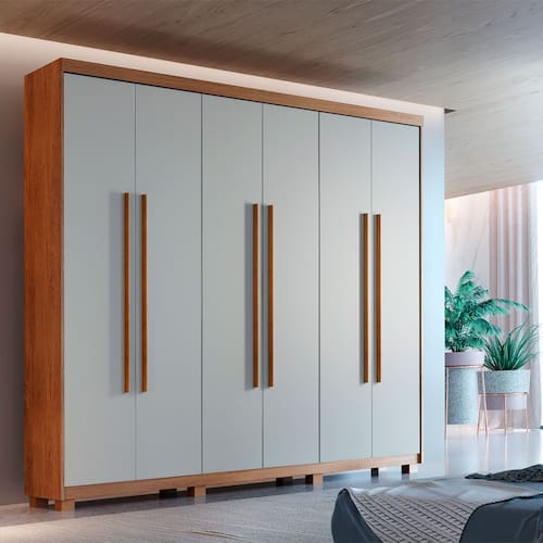 O Guarda-Roupa Heros com 6 portas é a escolha ideal para quem valoriza um visual clássico e elegante. Produzido 100% em MDF, ele combina robustez com um design refinado, garantindo durabilidade e estilo. Seu espaço interno é inteligentemente dividido, proporcionando uma organização prática e eficiente das suas roupas e objetos. Com 6 portas, 2 gavetas com corrediças telescópicas de fácil abertura, 5 prateleiras, 3 cabideiros e compartimentos perfeitos para calçados, o Heros oferece tudo o que você precisa para um quarto impecável. Os pés elevam o móvel, facilitando a limpeza e adicionando um toque de sofisticação ao ambiente.