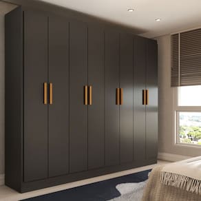 O(a) Guarda-Roupa Casal Hilton 8 Portas Black - Loja é produzido em MDP na escala de brilho Semi-Brilho, e possui um grau de dificuldade de montagem: Médio.