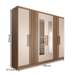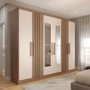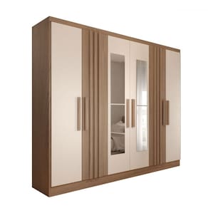 O(a) Guarda-Roupa Casal Hungria com Espelho Natural/Off White - Loja é produzido em MDP na escala de brilho Fosco e Semi-Brilho, e possui um grau de dificuldade de montagem: Médio.
