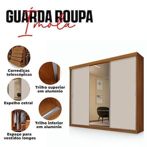 Está montando seu quarto? Apresentamos para você este belo guarda roupa da linha Ímola. Possuindo três portas de correr, sendo a porta central equipada com espelho. Internamente, conta com cinco gavetas com corrediças telescópicas, facilitando o deslizamento suave. Com nicho central para organizar seus objetos e amplo espaço para acomodar vestidos longos. Desenvolvido em 100% MDF, é fabricado pela Luapa e projetado cuidadosamente para combinar com diversos tipos de ambientes, garantindo uma boa durabilidade e resistência. Confira e aproveite!
