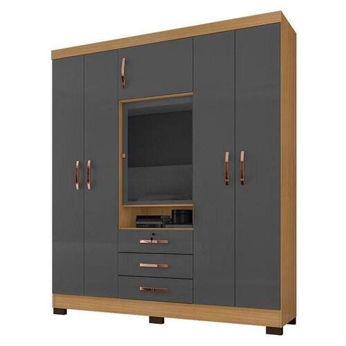 Guarda Roupa Casal Imperial Carvalho Americano Grafite - Incorplac