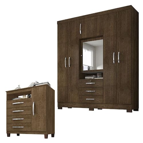 Guarda Roupa Casal Imperial com Cômoda Sapateira Cannes Malbec – Incorplac