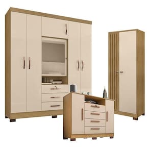Esta precisando trocar os móveis do seu quarto? Conte com a gente temos a opção ideal para que seu quarto fique ainda mais moderno e bonito. Apresentamos esse lindo conjunto composto pelo guarda roupa da linha Imperial, cômoda da linha Madri e o armário multiuso da linha Versatile fabricados pela Incorplac. O guarda roupa possui amplo espaço interno, 6 portas, gavetas, prateleiras ideais para acomodar roupas, sapatos e acessórios. O multiuso e a cômoda complementa o conjunto com funcionalidade e charme. Fabricados pela Incorplac, referência em qualidade e durabilidade. Combinação perfeita para um ambiente prático e elegante! Aproveite e venha já garantir o seu!