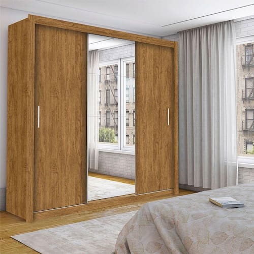 Guarda Roupa 3 Portas de Correr com Espelho Isabela Luxo. Acompanha 4 espelhos na porta do meio, que alem de serem funcionais, trazem a sensacao de amplitude, principalmente em ambientes menores. Sua cor combina facilmente com todos os estilos de decoracoes, alem de deixar o seu quarto com um visual sofisticado. Ideal para cabides de ate 37 cm, ele possui em seu interior 4 gavetas e 4 prateleiras para guardar suas roupas de cama, banho e o que mais for preciso, com a elegancia e qualidade.