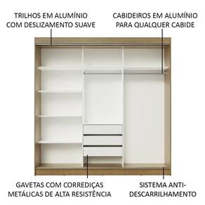 Um dos principais diferenciais desta versão é que todas as portas possuem espelhos, que ampliam o ambiente e são bastante práticos no dia a dia. Internamente, o espaço é ótimo, com diversas prateleiras e nichos, além de três gavetas espaçosas com corrediças metálicas, muito mais seguras e resistentes.