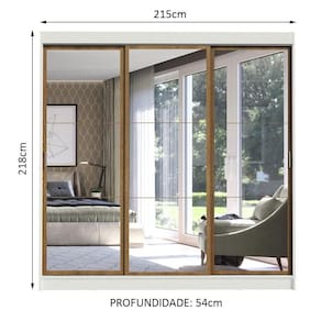 - Três (3) portas de correr com sistema anti-descarrilhamento, todas com espelhos