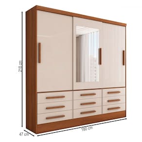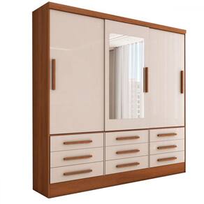 O(a) Guarda-Roupa Casal Joris 3 Portas 9 Gavetas com Espelho Cinamomo/Off White - Loja é produzido em MDP na escala de brilho Brilho, e possui um grau de dificuldade de montagem: Médio.