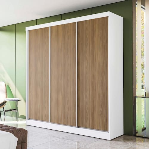 Produzido em MDP, material de alta qualidade, com chapa de 15mm, ele conta com três portas de correr e o tamanho ideal para todos os ambientes, com 2,18m de altura, 2,13m de largura e 53cm de profundidade. E são sete camadas de pintura, tanto na parte interna quanto na externa, o que garante mais durabilidade e beleza ao seu móvel.