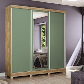E para completar o charme do guarda-roupa, ele conta com corpo na cor nogueira, com pintura touch, que traz a textura dos veios da madeira, enquanto suas portas são reversíveis, possibilitando escolher entre as cores verde oliva, com pintura fosca, ou nogueira, com acabamento touch, garantindo muita beleza para seu espaço. E com espelho de corpo inteiro e pés em polipropileno, esse modelo será o destaque do seu espaço, proporcionando beleza e praticidade ao seu dia a dia.