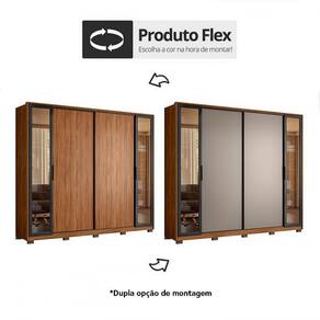 Guarda Roupa Casal Laredo 4 Portas Flex com Vidro Reflecta e Pés - Demartêz