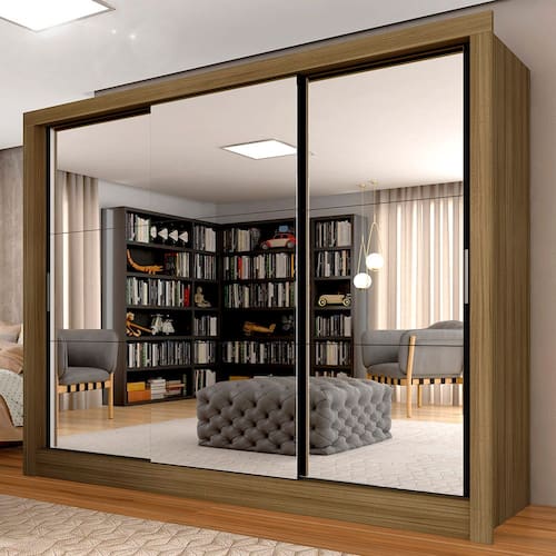 O Guarda Roupa Casal Layla 3 Portas com Espelho combina funcionalidade e estética em um único móvel, oferecendo um amplo espaço de armazenamento de forma prática, enquanto adiciona um toque moderno e elegante ao ambiente.