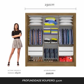 Detalhes Técnicos Medidas do Guarda-roupa Montado: A:200cm | L:190cm | P:52cm Medidas do Espelho Central: 0608X0590X0003MM Medidas do Espelho Lateral: 0590X0590X0003MM