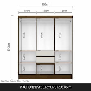 Medidas do Guarda-Roupa Montado: A:190cm | L:156cm | P:40cm