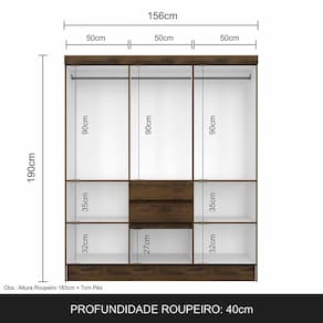 Medidas do Guarda-Roupa Montado: A:190cm | L:156cm | P:40cm