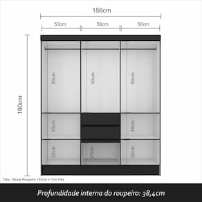 Conteúdo da Embalagem: - 01 Guarda-roupa - 02 Volumes - Plástico protetor do Guarda-roupa - Caixa papelão - Acessórios para Montagem