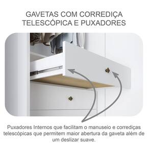 Apresentamos esse lindo guarda roupa desenvolvido com um design moderno, amplo espaço interno, prateleiras, gavetas para acomodar suas roupas e acessórios de forma organizada. Fabricado com materiais de altíssima qualidade em MDF. Para que seu quarto fique ainda mais belo e funcional o guarda roupa da linha Linea e a escolha ideal, garanta já o seu!