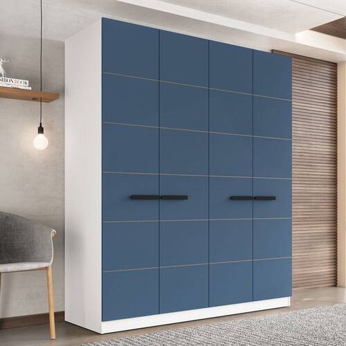 O(a) Guarda-Roupa Casal Lisboa 4 Portas 4 Gavetas Branco/Azul - Politorno é produzido em MDF e MDP na escala de brilho Semi-Fosco, e possui um grau de dificuldade de montagem: Médio.