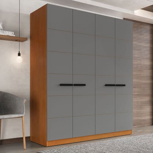 O(a) Guarda-Roupa Casal Lisboa 4 Portas 4 Gavetas Freijó/Cinza - Politorno é produzido em MDF e MDP na escala de brilho Semi-Fosco, e possui um grau de dificuldade de montagem: Médio.