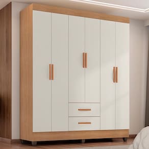 Guarda Roupa Casal Lite 6 Portas E 2 Gavetas Nature/off White - Móveis Leão Nature/off White
